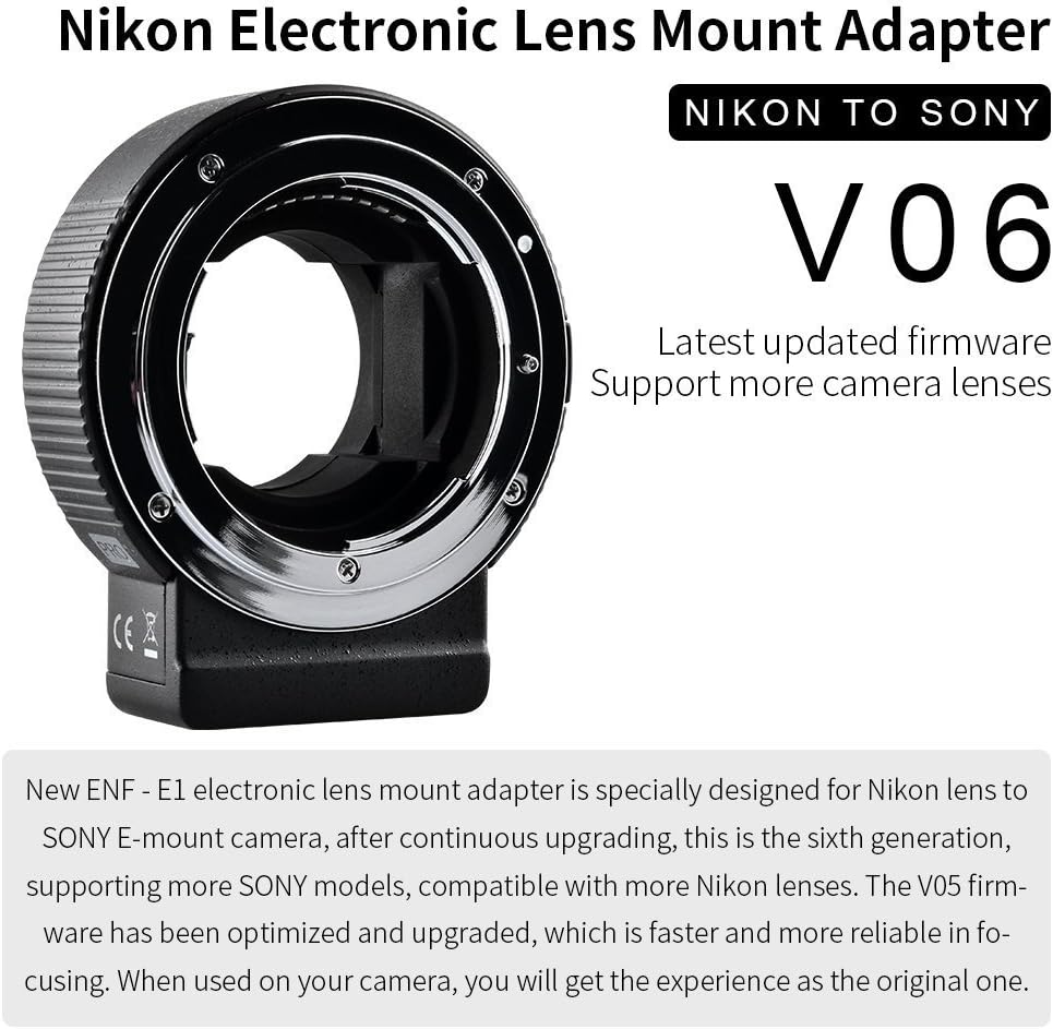 Fecommlitecm enf e1 pro 7. Commlite cm enf e1 pro nikon f mount lens to sony e mount autofocus electronic lens adapter waperture control built in is vr exif transmitting for sony a9 a7r2 a7ii a6300 a6500 a7r by commlite 37 out of 5 stars. Vello nikon f to sony e autofocus lens adapter v06 399 vellos nikon af adapter now shipping with fw 06 is another re badged commlite which north american users may prefer for its usa warranty and support.