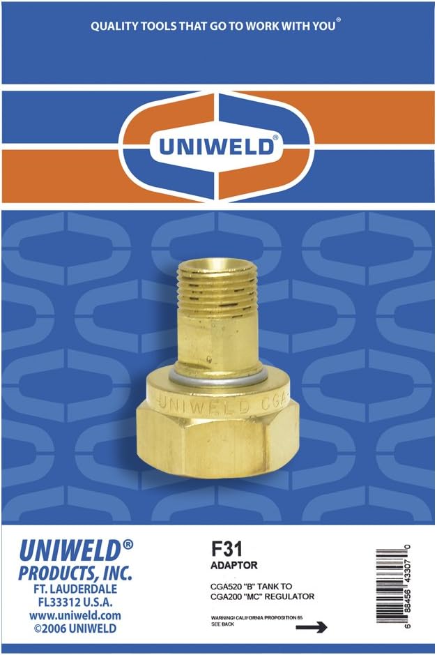 Uniweld F31 Brass Adaptor From Cga520 B Tank To Cga200 Mc